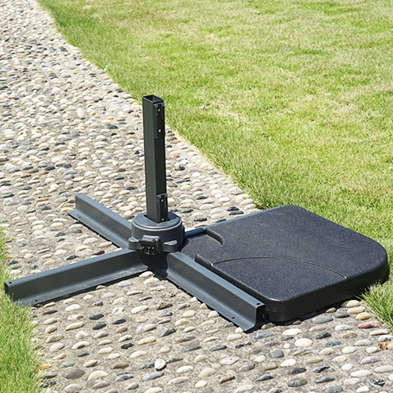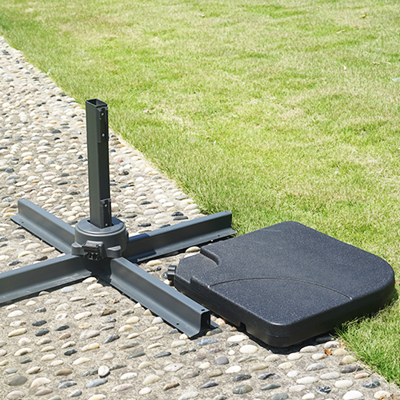Baza za Roma Umbrella1/4 HDPE UA1914 prihvaća kvadratni dizajn s dimenzijama od 50 cm (duljina) x 50 cm (širina) x 7,5 cm (visina). Ima jednostavan i velikodušan izgled i može se savršeno integrirati u različita vanjska okruženja. Četiri ugla baze opremljena su crnim kvadratnim kontra -težinskim blokom, koji je povezan središnji metalni nosač kako bi formirao stabilnu potpornu strukturu. Dizajn bloka protuteže ne samo da povećava stabilnost baze, već i omogućuje korisnicima da rastavljaju i sastavljaju po potrebi.