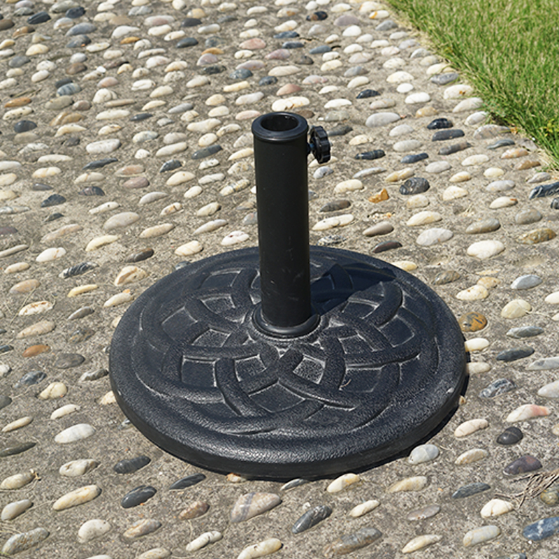 Baza je izrađena od materijala od smole i teži 19 kg. Materijal smole ima karakteristike jake otpornosti na vremenske uvjete, otpornost na koroziju i nije lako deformirati. Može izdržati test vanjskog okoliša i osigurati dugoročnu izdržljivost baze. Istodobno, težina od 19 kg također čini bazu dovoljno stabilnom da učinkovito spriječi da se parasol prevrne u jakim vjetrovima.