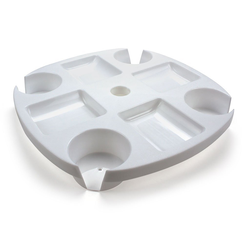 Veličina stola za kišobran na plaži UA1912 je 43 cm (duljina) x 43 cm (širina) x 5,5 cm (visina). Mala je i izvrsna i ne zauzima previše prostora. Njegov jedinstveni trokutasti dizajn nije samo lijep, već se može čvrsto fiksirati na kišobranom plaže s promjerom od 28-32 mm kako bi se osiguralo da se tijekom upotrebe neće lako probiti. Na radnoj površini nalaze se više žljebova i držača za čaše, koji se mogu koristiti za postavljanje mobilnih telefona, pića, krema za sunčanje i drugih predmeta za vašu udobnost u bilo kojem trenutku.
