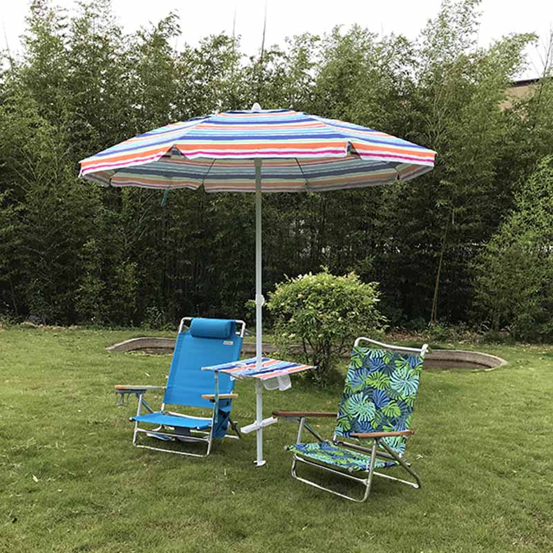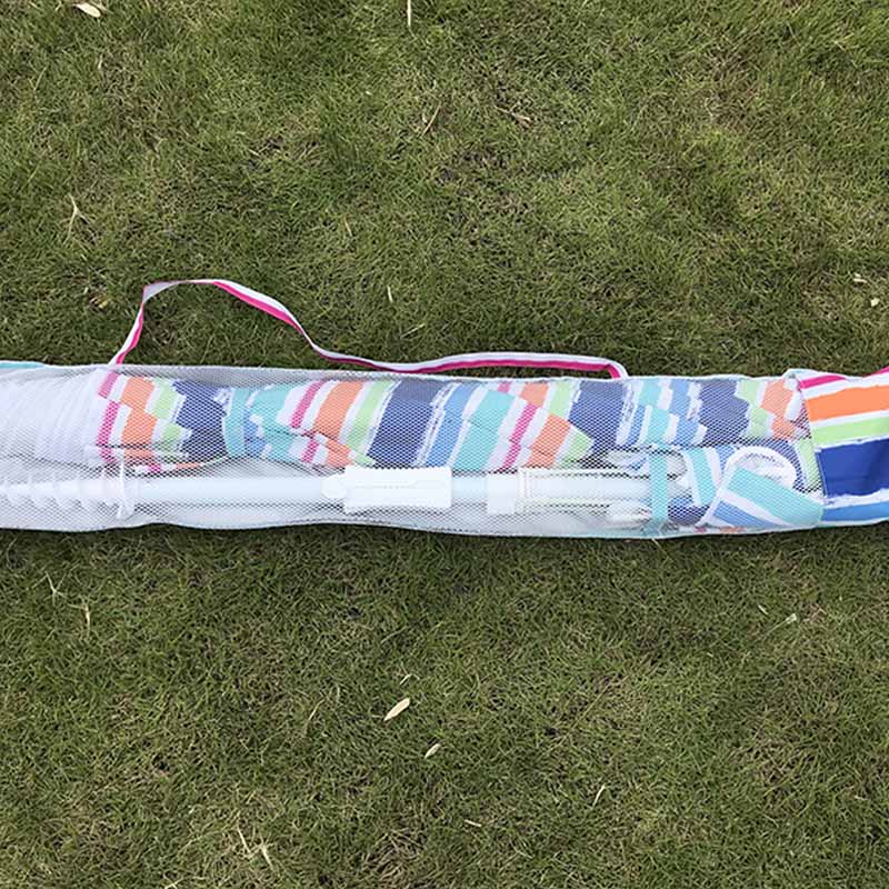 Ovaj parasol prihvaća nagib koji se može naginjati, koji može prilagoditi kut sunca u skladu s položajem sunca, osiguravajući da u bilo kojem trenutku možete postići efekt sunca. Bilo da se sunča na plaži ili uživa u popodnevnim satima u dvorištu, ovaj parasol može zadovoljiti vaše potrebe. Pole i rebra parasola izrađeni su od materijala aluminijske legure visoke čvrstoće, s promjerima od 32 mm i 5-6 mm, osiguravajući čvrstoću i izdržljivost proizvoda. Materijal od aluminijske legure nije samo lagan, već ima i dobru otpornost na koroziju i može ostati stabilan u svim vremenskim uvjetima. Tkanina parasola izrađena je od 120 g poliestera sa srebrnom oblogom, koja ima zaštitu od sunca i UV zaštitu. Dizajn srebrne obloge može učinkovito odražavati sunčevu svjetlost, smanjiti temperaturu ispod kišobrana i pružiti ugodnije iskustvo sunca. Pružamo tri različite veličine parasola, promjera 2,0 metara, 2,1 metra i 2,2 metra, kako bismo zadovoljili različite scenarije i potrebe. Možete odabrati odgovarajuću veličinu u skladu s stvarnim prostorom za upotrebu i nekoliko ljudi. Parasol je opremljen posebnim sidrištem kako bi se osiguralo da se može čvrsto fiksirati čak i kod jakih vjetrova kako bi se spriječilo da se parasol raznese vjetar. Dizajn sidra posebno je pogodan za upotrebu na plaži i na otvorenom, pružajući sigurnije i pouzdanije korisničko iskustvo. Veličina pakiranja parasola je 128x22x18 cm, a svaka kutija sadrži 6 jedinica za jednostavan prijevoz i skladištenje. Lagani dizajn pakiranja olakšava obavljanje tijekom aktivnosti na otvorenom.