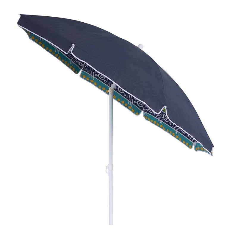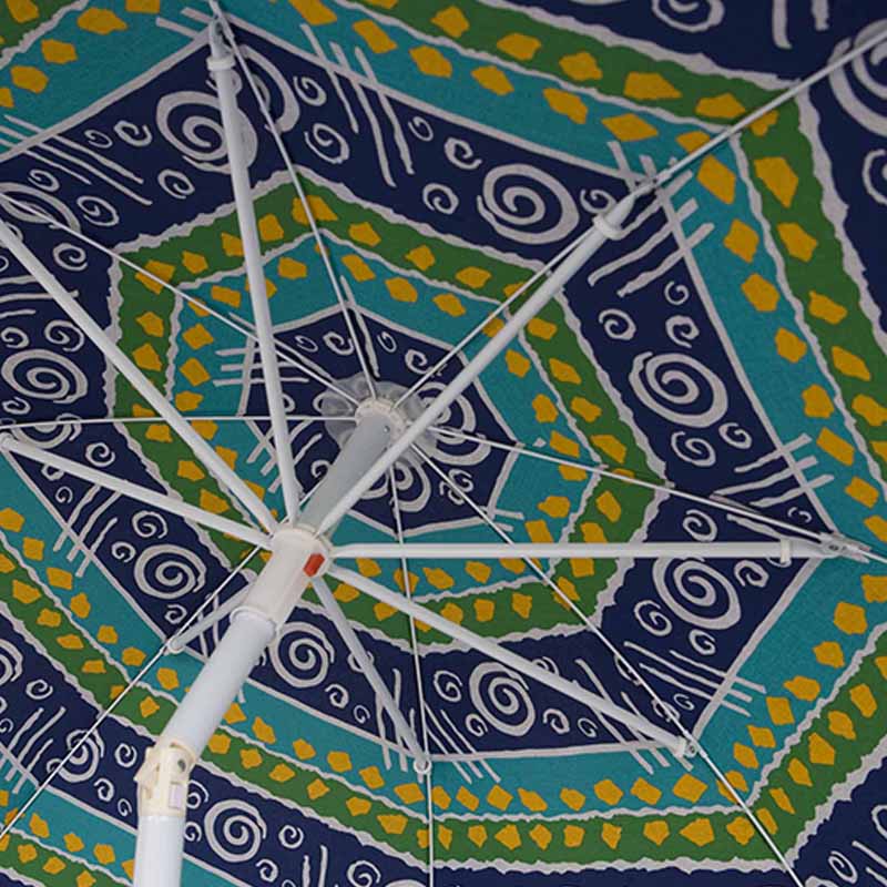 Ovaj kišobran na plaži opremljen je funkcijom nagiba, koja korisnicima omogućuje fleksibilno podešavanje kuta površine kišobrana prema smjeru i intenzitetu sunca kako bi se postigao efekt sunca. Ovaj dizajn ne samo da poboljšava praktičnost upotrebe, već i učinkovito izbjegava izravnu sunčevu svjetlost i štiti kožu od oštećenja UV -a.