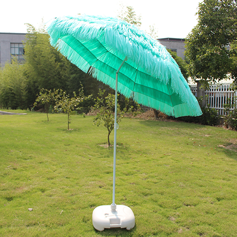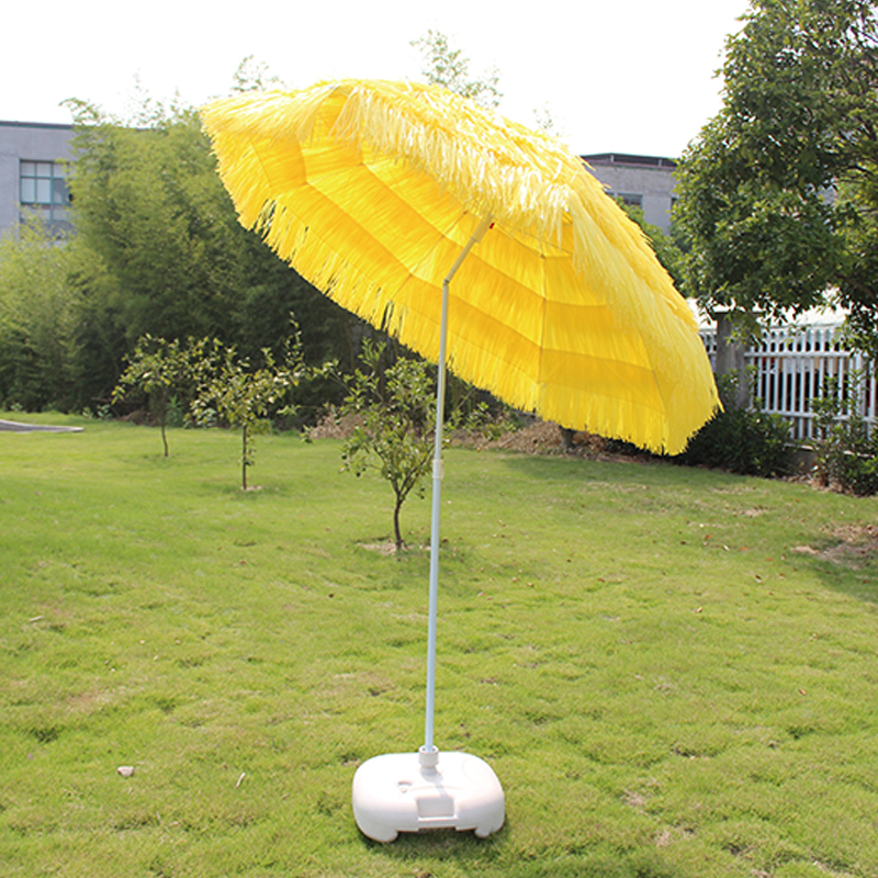 Najveći vrhunac ovog parasola je njegova funkcija nagiba. Podešavanjem kuta površine kišobrana, možete fleksibilno prilagoditi raspon sjene parasola prema položaju sunca i vlastitih potreba, osiguravajući da možete uživati ​​u efektu sjene u bilo kojem trenutku. Ovaj dizajn nije samo praktičan, već i uvelike poboljšava udobnost upotrebe. Havajski nagib Parasol BU1947 koristi čelične stupove i rebra kako bi se osigurala izdržljivost proizvoda. Promjer stupa je 19/22 mm ili 22/25 mm, a promjer rebra je 2,8 mm ili 3,0 mm, što može podnijeti jake vjetrove i osigurati stabilnost kada se koristi na otvorenom. U isto vrijeme, PP tkanina od slame ima dobru otpornost na vremenske uvjete, nije lako izblijediti i može dugo održavati svoju ljepotu. Kako bi zadovoljio potrebe različitih korisnika, havajski nagib Parasol BU1947 pruža dvije mogućnosti veličine: promjera 1,8 metara i promjera 2,0 metara. Možete odabrati pravu veličinu u skladu s stvarnim prostorom za upotrebu i SunShade -u kako bi se osiguralo da parasol može u potpunosti igrati svoju ulogu.