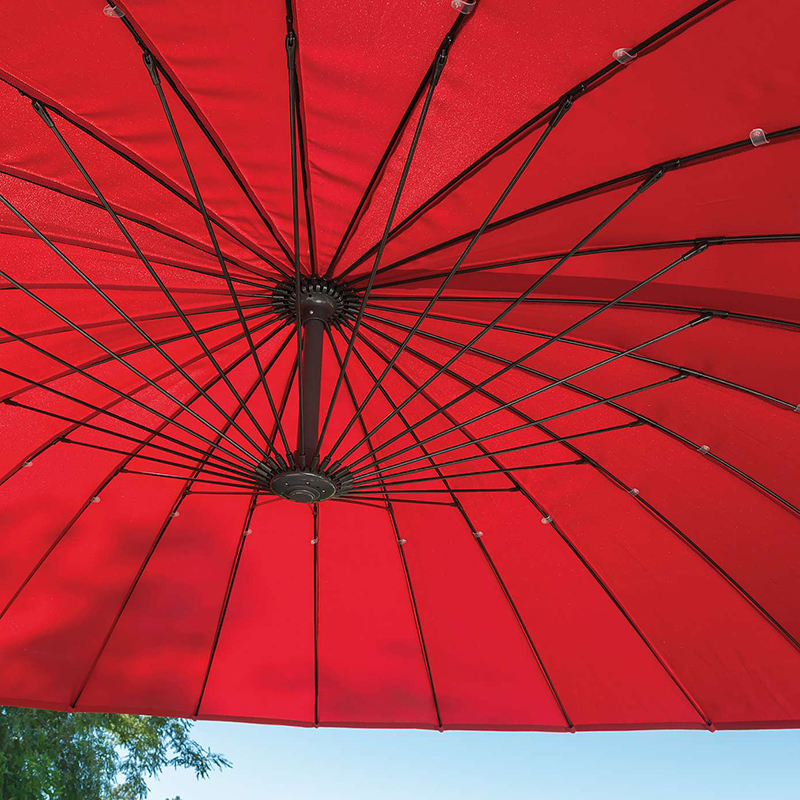 Kišobran je izrađen od poliesterske tkanine od 160 g/180 g/200 g, koja ima dobar efekt i izdržljivost sunca, te može učinkovito blokirati ultraljubičaste zrake i zaštititi vas od sunca.