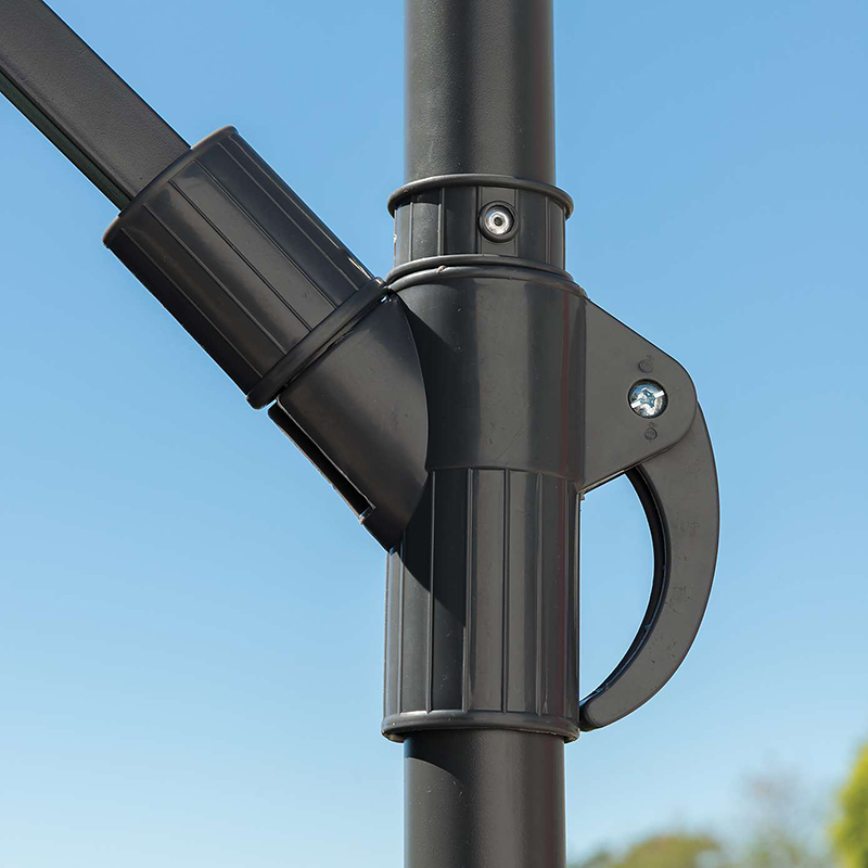 Jedinstveni konzolni dizajn omogućuje da se kišobran objesi s jedne strane, bez prepreka na terenu, što korisnicima omogućuje slobodno kretanje ispod kišobrana.