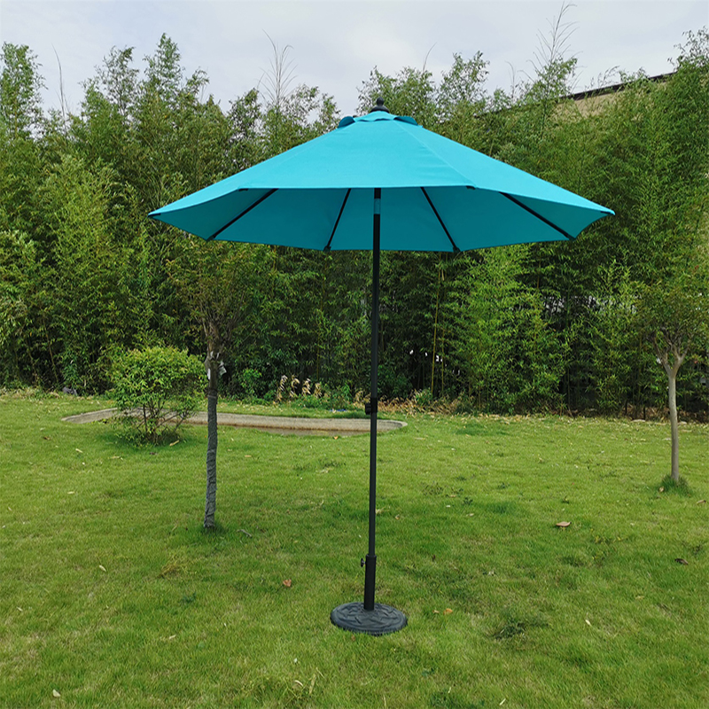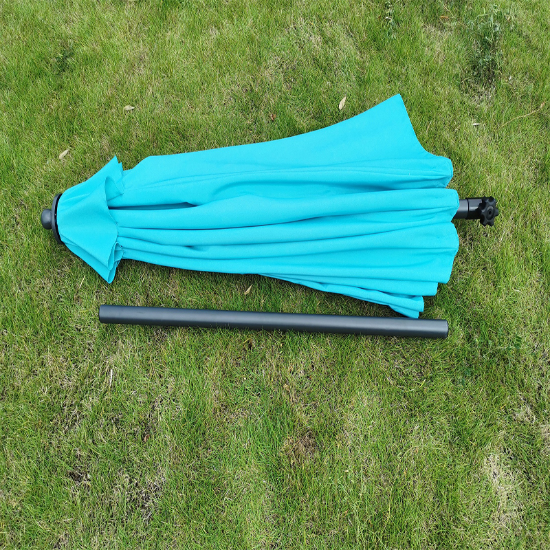 Izrađena od visokokvalitetne plave tkanine, svijetle boje, snažne izdržljivosti i nije lako izblijediti. Tkanina ima dobre funkcije zaštite svjetlosti i UV, koje mogu učinkovito blokirati ultraljubičaste zrake i zaštititi vas i vašu obitelj od izravne sunčeve svjetlosti. Vrh parasola opremljen je rotiranim uređajem, koji može slobodno prilagoditi kut površine kišobrana prema smjeru i intenzitetu sunca kako bi se osigurao efekt sunca. Operacija rotacije je jednostavna, a lako je postići punu sunčanu površinu kako bi zadovoljio potrebe različitih vremenskih razdoblja. Stalak za parasol dizajniran je s funkcijom podešavanja visine, koja može prilagoditi visinu površine kišobrana prema stvarnim potrebama da se prilagodi različitim scenama i prostorima. Rad podešavanja visine je jednostavan; Nisu potrebni komplicirani alati, a prikladan je i brz. Stalak za parasol izrađen je od materijala visoke čvrstoće, sa stabilnom strukturom i snažnim opterećenim kapacitetom. Može izdržati vjetar i osigurati sigurnu upotrebu. Dno postolja opremljeno je anti-klizanjem dizajna kako bi se spriječilo klizanje i povećala stabilnost. Parasol se može lako presaviti i pohraniti, što je prikladno za skladištenje i nošenje. Pogodan je za putovanja na otvorenom, kampiranje i druge prigode. Presavijeni parasol je malen veličine, ne zauzima previše prostora i lako ga je pohraniti.
