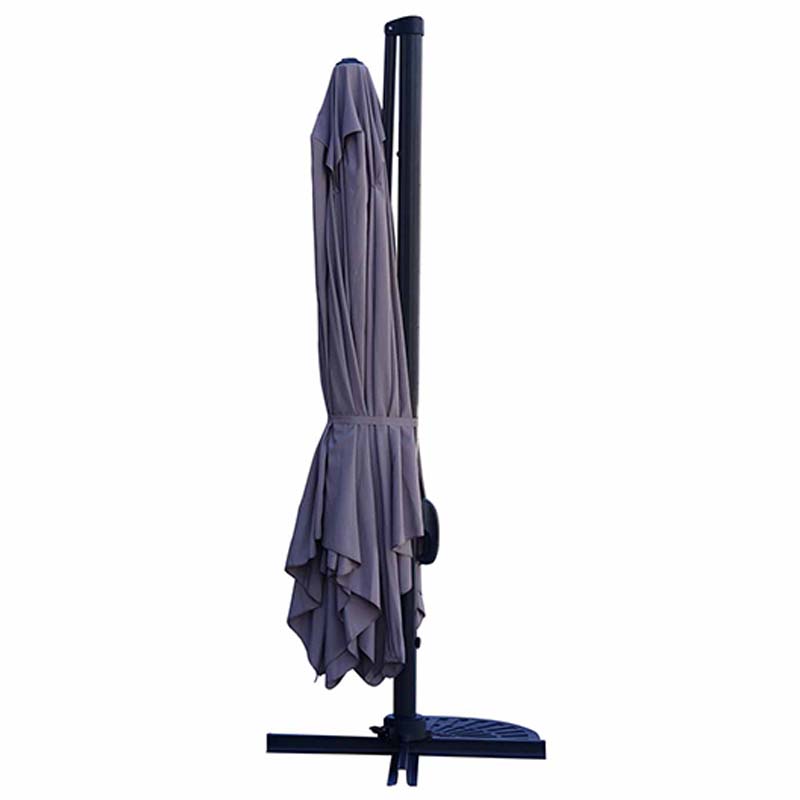 Površina kišobrana izrađena je od poliesterske tkanine od 200 g, koja ima dobru hidroizolaciju, zaštitu od UV -a i izdržljivost, može učinkovito blokirati izravnu sunčevu svjetlost i korisnicima pružiti ugodno iskustvo sunca. Poliesterska tkanina je također lako čistiti i brzo sušiti, što je prikladno za svakodnevno održavanje. Rebra kišobrana izrađena su od aluminija od 14 mm × 24 mm, koji ima karakteristike velike čvrstoće i lakoće, osiguravajući da je površina kišobrana i dalje stabilna kod jakih vjetrova. Pod kišobrana izrađen je od aluminija od 53 mm × 76 mm, koji pruža snažnu potporu i čini tijelo krova stabilnijim i izdržljivim. Ovaj kišobran prihvaća konzolnu strukturu. Kišobranski stup podržava površinu kišobrana kroz čvrstu konzolnu nosač, tako da se površina kišobrana ovješe iznad tla, izbjegavajući opstrukciju tla i korisnicima pružajući prostraniji prostor aktivnosti.