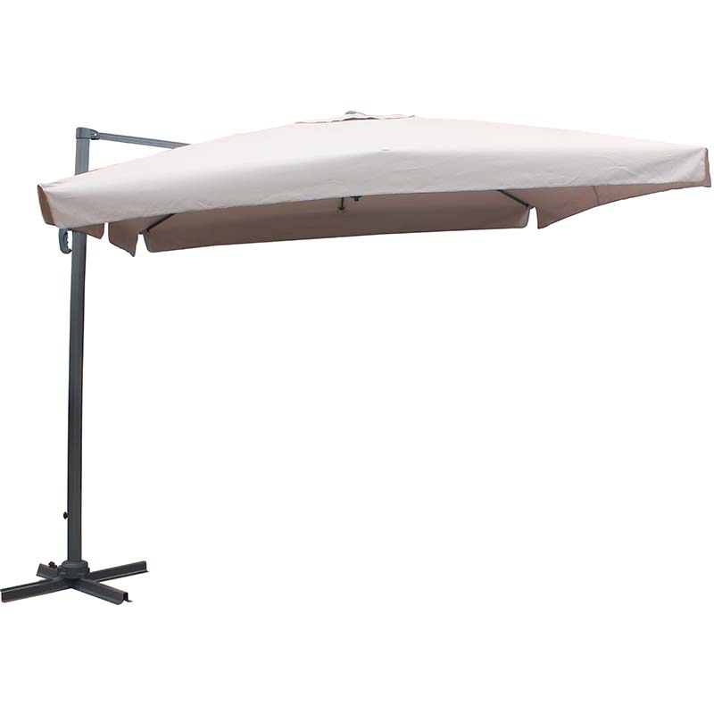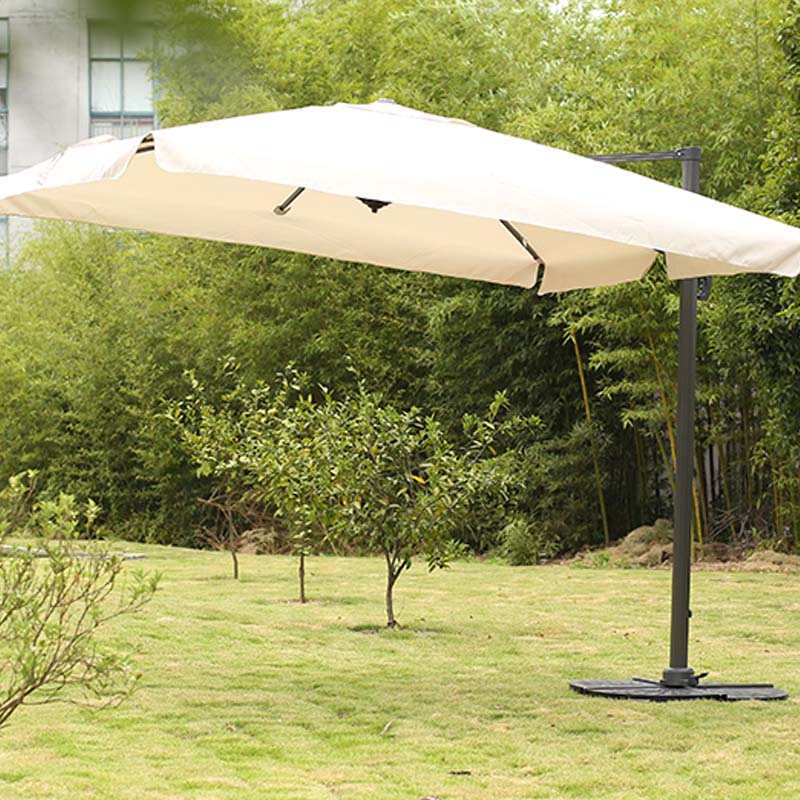 Visokokvalitetni parasol dizajniran je za vanjsko sunčanje. Njegov jedinstveni kvadratni dizajn i konzolna konstrukcija ne samo da pružaju prostrani prostor za nijansu, već i osigurava korištenje tla bez barijere, što je vrlo pogodno za dvorišta, terase, kafiće i mjesta za slobodno vrijeme na otvorenom. Sa svojom čvrstom i izdržljivom strukturom i elegantnim izgledom, ovaj je kišobran idealan izbor za sunčanje na otvorenom.