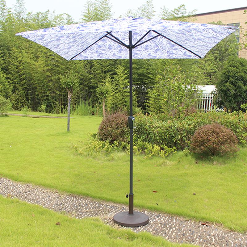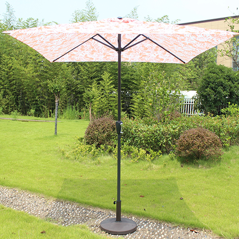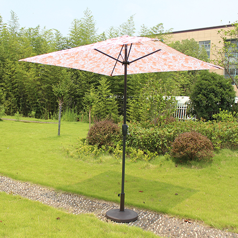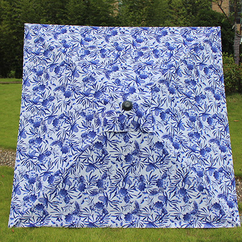 Kišobran od čeličnog kvadrata, Flower GP1917, prihvaća klasični kvadratni dizajn. Kad se kišobran odvija, on tvori prostrano područje nijanse veličine 2,0x2,0 metara ili 2,5x2,5 metara, što može pružiti dovoljno prostora za nijansu za više ljudi. Površina kišobrana izrađena je od poliesterske tkanine od 160 g ili 180 g, koja ima dobro svjetlo svjetlo i izdržljivost, može učinkovito blokirati ultraljubičaste zrake i zaštititi vas od izravne sunčeve svjetlosti. Dizajn uzorka površine kišobrana je izvrstan, dodajući eleganciju i modu u vaš vanjski prostor.