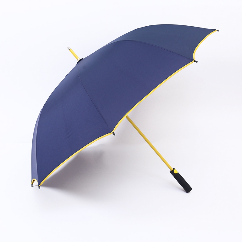Ovaj kišobran za golf prihvaća klasični tamnoplavi dizajn, s kišobranom širinom od 140 cm i visinom od 95 cm, što može pružiti dovoljno područja pokrivanja kako bi se osiguralo da ostanete suhi čak i na kiši. Rub površine kišobrana dizajniran je sa žutim ivicama, što ne samo da povećava vizualni sloj, već i povećava cjelokupni osjećaj mode. Kišobran je dizajn ravne ručke, koji je ugodan za držanje i lako nošenje.