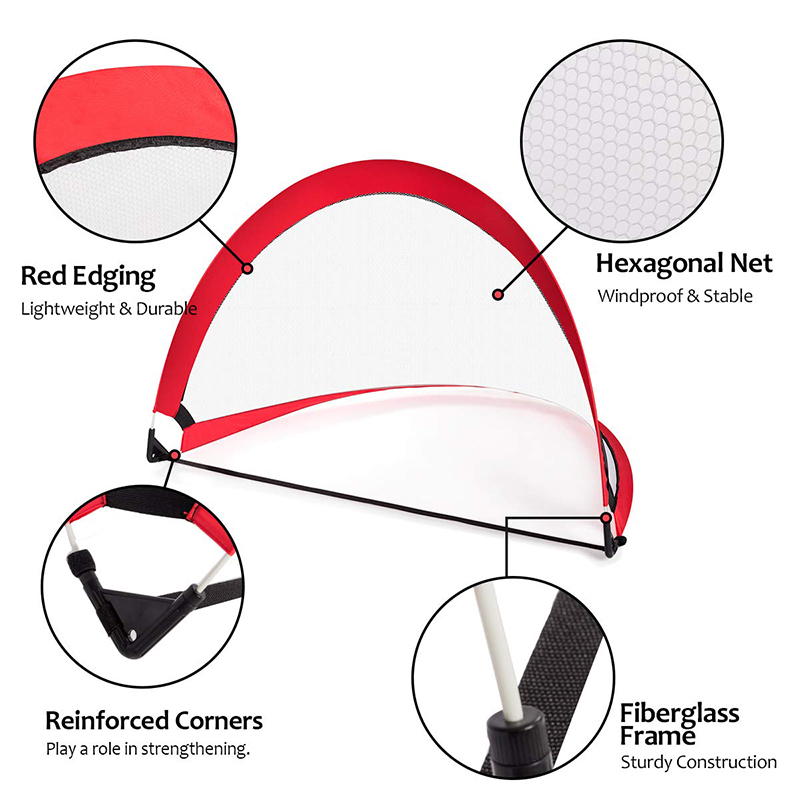 Nogometni cilj prihvaća jedinstveni pop-up dizajn, koji se može završiti za 3 sekunde bez kompliciranih koraka montaže. Bez obzira na to bilo u zatvorenom ili na otvorenom, to se brzo može razvijati, a igra se može započeti u bilo kojem trenutku.