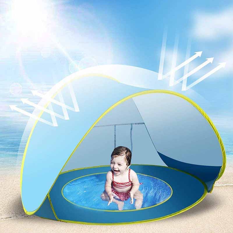 Usredotočeni smo na parasol na plaži, kišobran za popločani dio, šator i kišni kišobran.