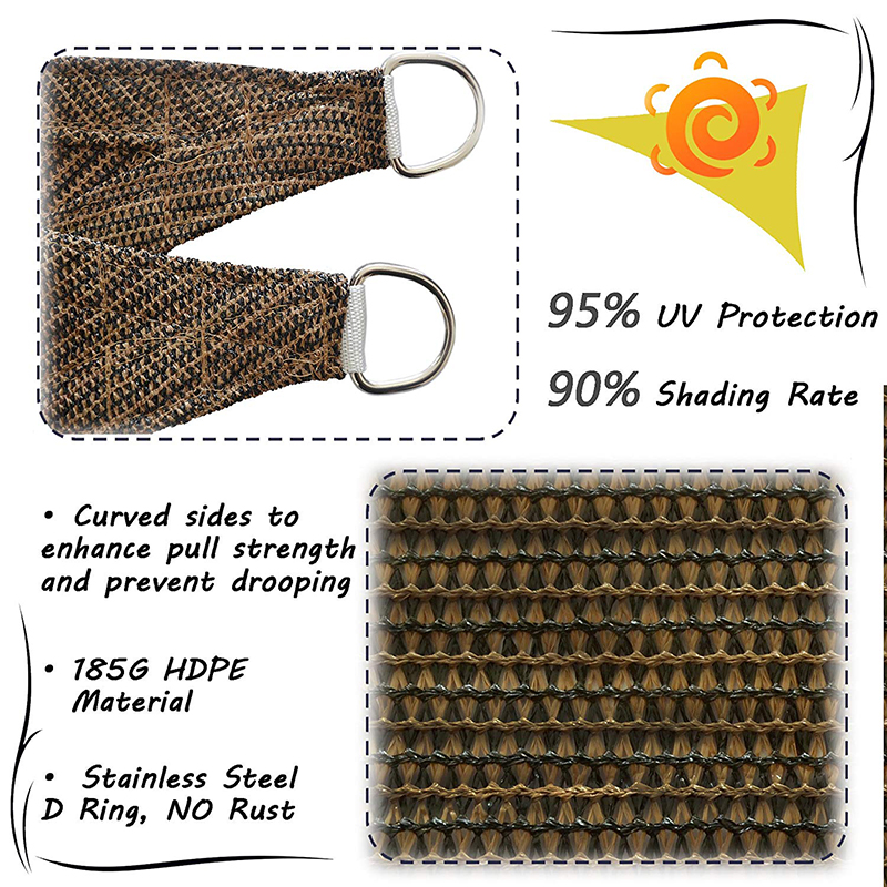 Polietilen materijal visoke gustoće: tenda je izrađena od 185 g materijala visoke gustoće (HDPE), koji ima trajnost i otpornost na UV. Ovaj materijal može učinkovito blokirati 95% ultraljubičastih zraka, štiteći vas od oštećenja UV -a. U isto vrijeme, tenda također ima 90% zasjenjenja, pružajući vam hladan i ugodan vanjski okruženje.